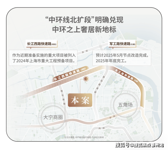 中环线北扩段明确兑现,军工路快速路25年开工,长江西路快速路列入上海市重大工程清单预备项目,快速链通城心,随着中环线北扩段的政策明确,淞南将正式进入中环时间。未来经逸仙高架,进入南北高架、内环高架、中环高架,可快速链通南北上海;多维立体路网全面升级,未来区域价值再攀新高。
