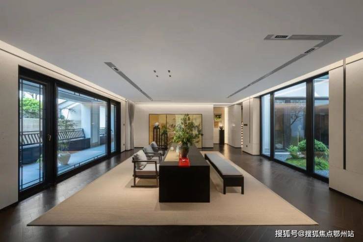 它让每个功能区既独立切分,又萦绕环通,堪称神来之笔。首先,它为这东方院落注入了自然的灵魂:每个房间,朝内永远有一片落地玻璃框出的园景。