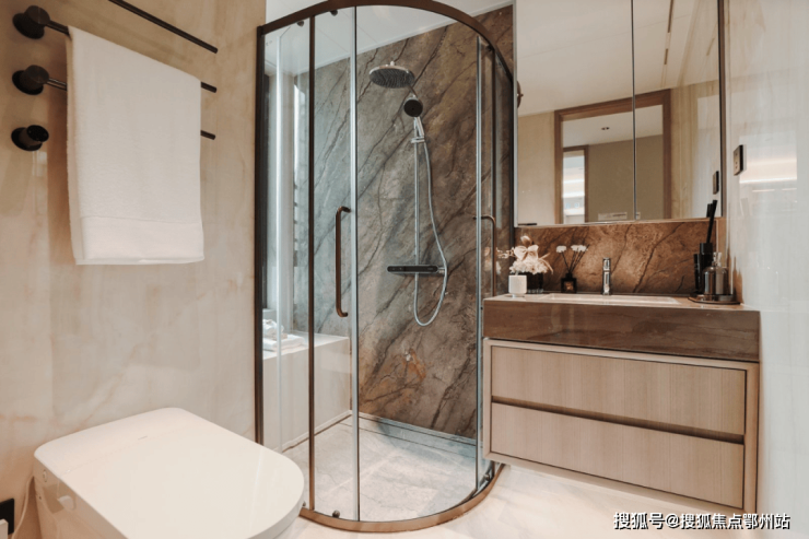 同时卫生间配有 杜拉维特 的 面盆、汉斯格雅的龙头 +五金、AO史密斯燃气热水器、杜拉维特智能马桶(建面约139 ㎡ 户型)、恩仕智能马桶(建面约 110 ㎡ 户型)等国际一线大牌,这个标准放到南大甚至是整个中环沿线,都是顶配级别。