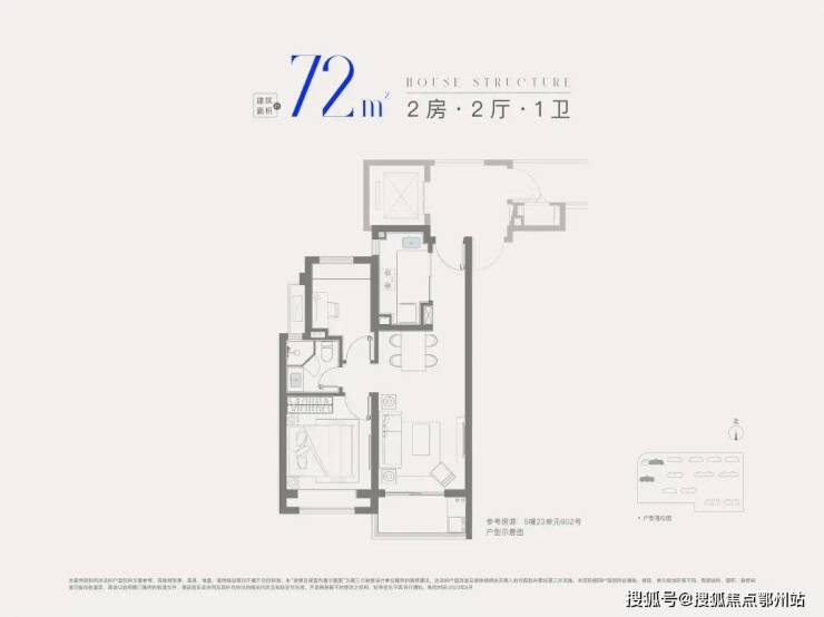 建面约72㎡2房1卫,做到 双开间朝南+全卧室带飘窗,总价低至2字头,是刚需上车2房的优质之选。