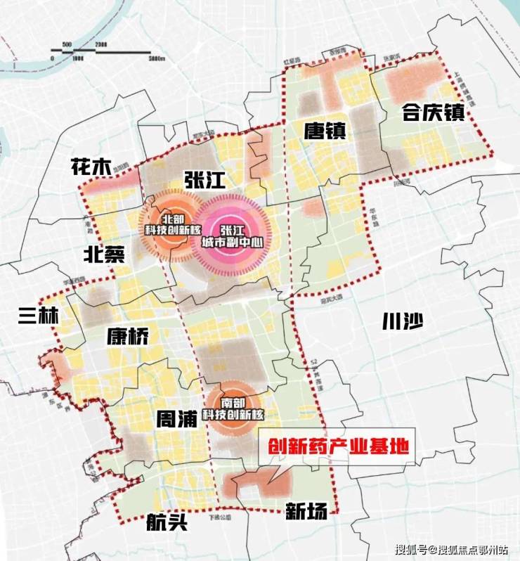张江预备打造世界生物医药产业集群主阵地—张江创新药产业基地,共约3.1平方公里。其中,新场就占据 约2.62平方公里,占比高达 约83.7%,扮演着举足轻重的角色。(数据来源:科创上海)