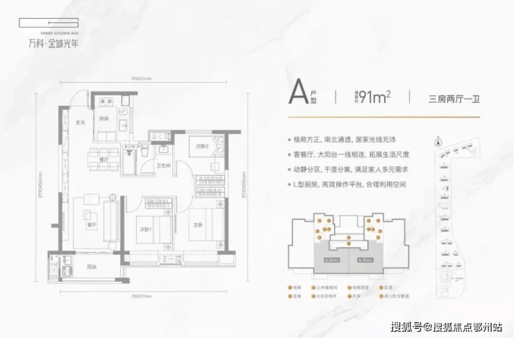 万科金域光年占地面积约10.43万方,总建面约40.36万方,容积率2.5,共2535户,