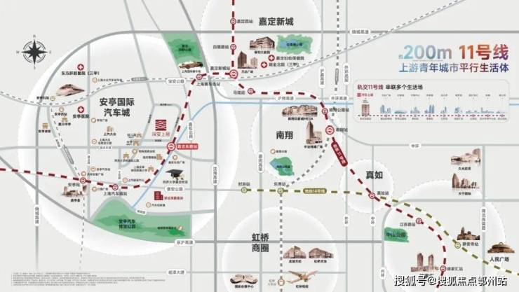通过11号线,项目2站即可直达嘉定新城,4站南翔印象城,11站真如副中心、17站徐家汇!