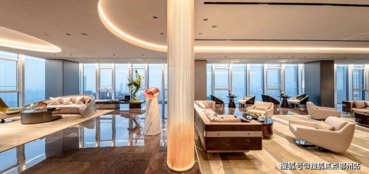 空间营造上,项目携手 邱德光、戴昆等国际设计大师团队, 突破传统 奢宅 范式,创新打造 270°环幕视野的"八开间"格局。每一面落地观景窗都犹如精心装裱的画框,将动态的"杭州天际线长卷"引入室内,实现建筑与城市的诗意对话。