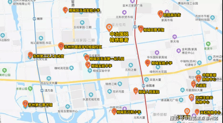 在生活配套上,相城区人民医院,苏州市第二工人文化宫、苏州第二图书馆、欧风商业街、天虹购物中心,虽然与项目还有一段距离,但也都在直线距离3公里以内。