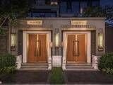 项目沿用现代新中式建筑风格, 采用古典三段式分割比例,立面材质主要为定制的御彩石真石漆,在达到真石漆逼真的天然效果的同时也起到了保护的作用,使得整个小区历久弥新。