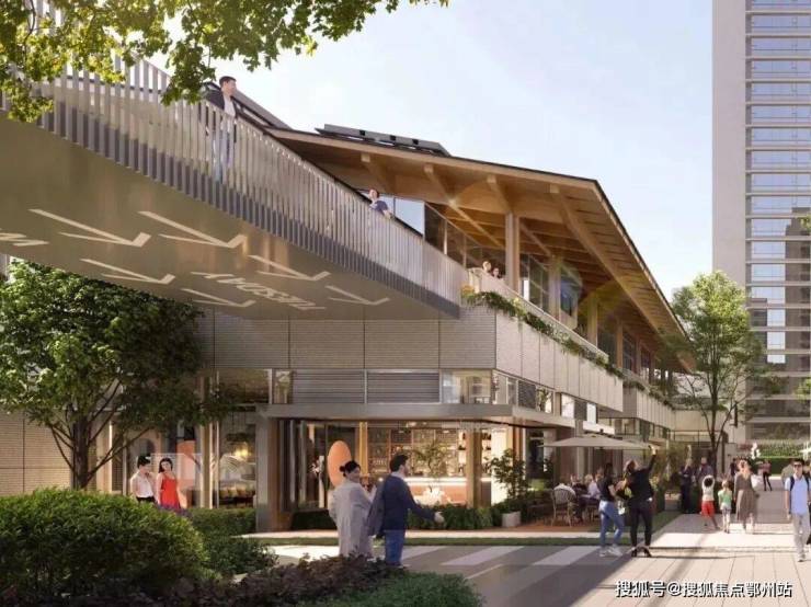 置于住宅底层的中央商业公园,以森感公园、九曲花街和花园大道三大主场景为核心,将十米以上(全区30%)高大的乔木、树屋商业及水景巧妙融合,营造自然与商业共生的都会花园街区。