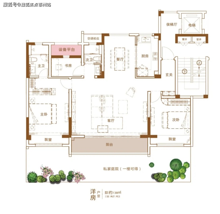 ·一层带有庭院,庭院与横厅等宽,客厅+餐厅达到约7.8米!