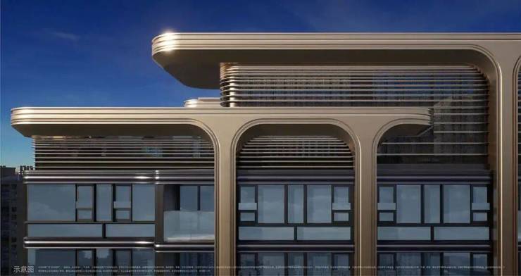 象屿·苏河琹庐的外立面设计堪称“降维打击”。高层立面采用区别于传统项目的“帽子”式塔冠,以中国传统展示珍奇艺术家具“多宝格”为设计灵感。