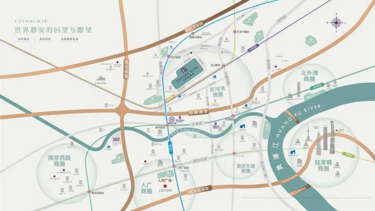 这个位置有多核心?东接陆家嘴金融圈、南邻人民广场商圈、西连静安寺核心、北靠大宁国际商圈,形成了独特的多圆心辐射格局。用一句通俗的话说:住在这里,上海繁华的地方都在你的“通勤舒适圈”内。