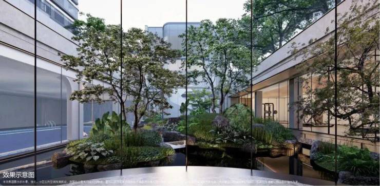 4、下沉式庭院,通过乌桕树、溪流构建一处安静的栖息之境,业主可在这里尽情放空。