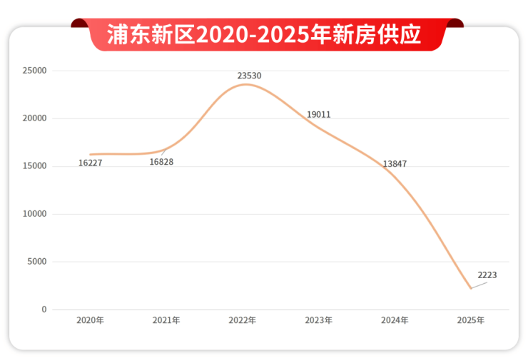第二,整个浦东2024-2025年的新房供应是急剧下滑的: