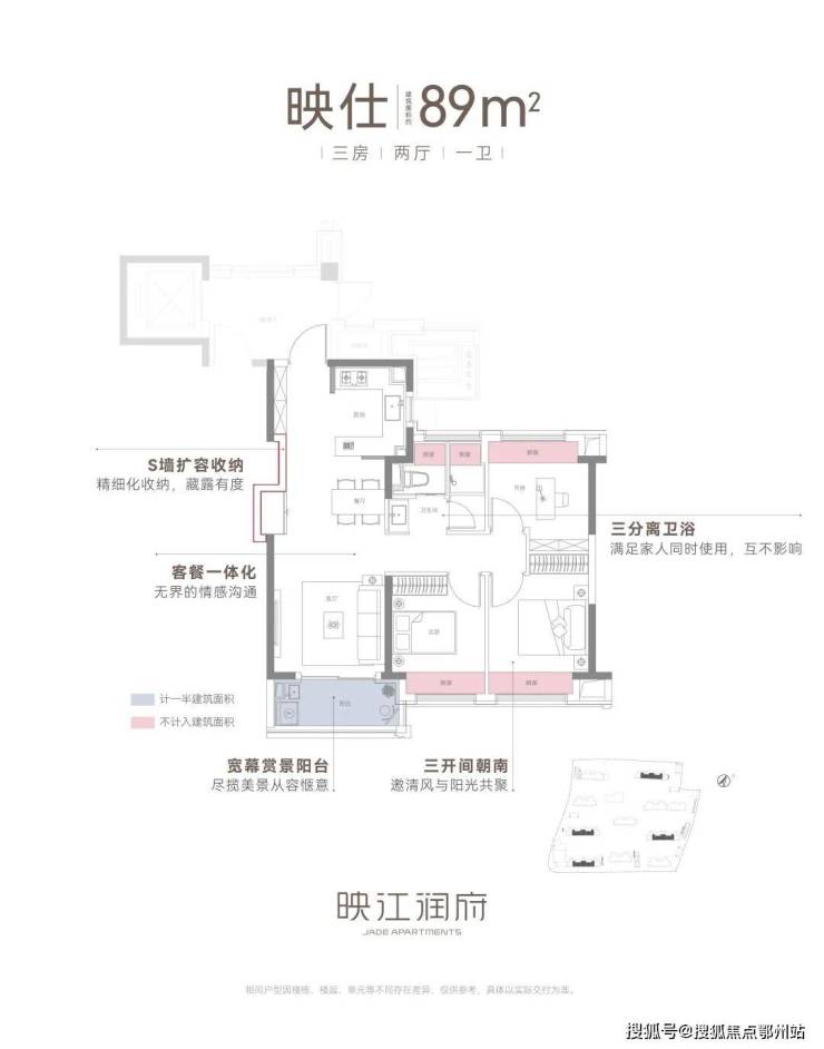 次是户型设计。在户型产品同质化严重的当下,映江润府花更多心思在户型创新设计,给到置业者更美好的家的体验。建筑面积约89㎡王炸小豪宅户型,拥有四大高光细节和创新设计,在市面上同类产品中非常能打。