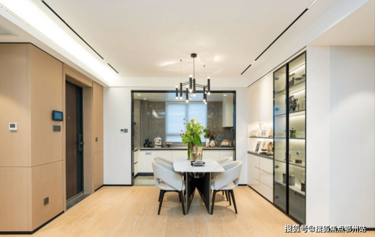 厨房L型设计超长导台设计,极具空间感,同时满足中西式料理所需;整个餐厅空间大气绰约,随时开启一场欢聚盛宴。