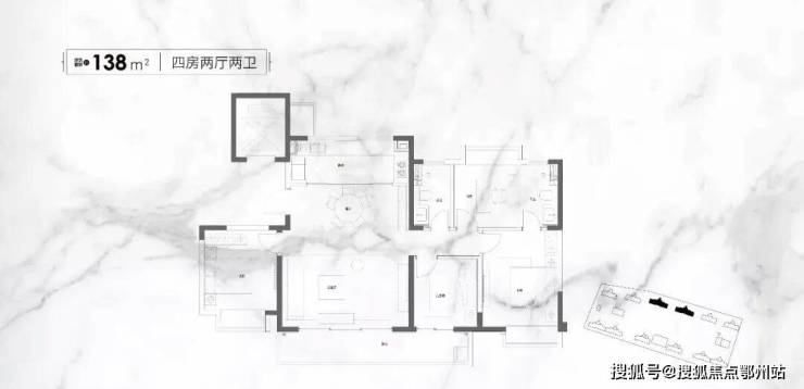 建面约138㎡四房两厅两卫户型诠释了真正大宅的空间尺度。