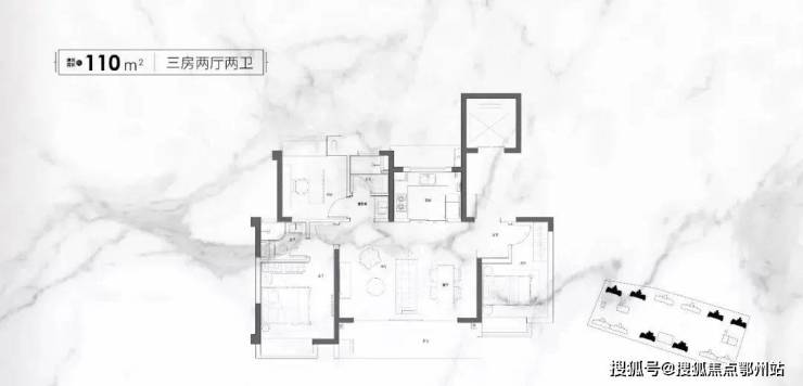 建面约110㎡三房两厅两卫户型,起步即封神。