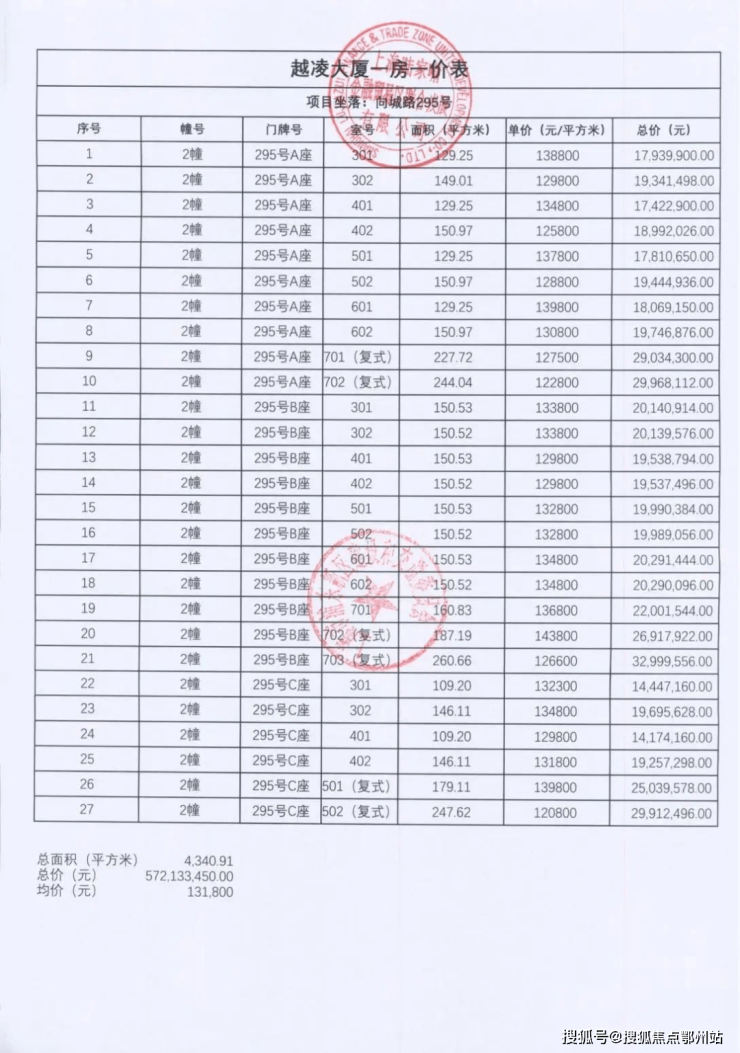 最新一房一价表: