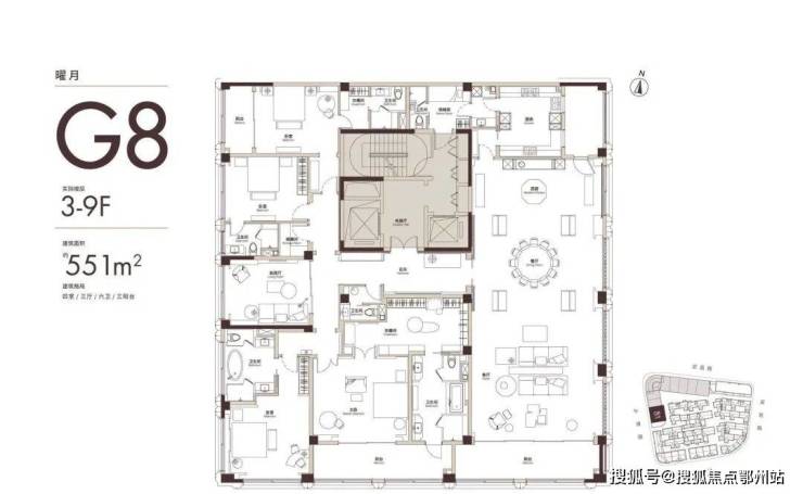 此外,外滩•天潼里 建面约550㎡G8户型,用一句话概括就是神户型大融合: