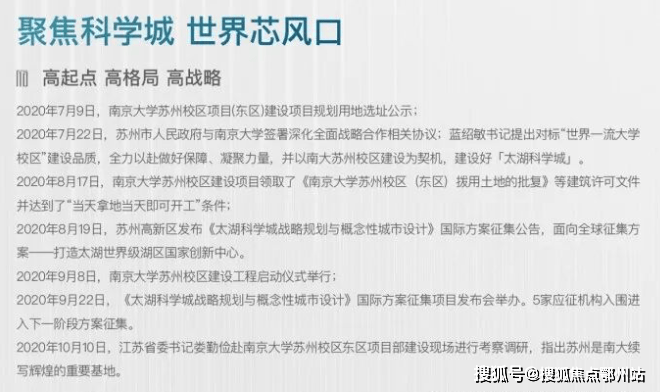 一核四城战略版块之上,世界级太湖科学城+科技城,2大超级版块双核驱动;