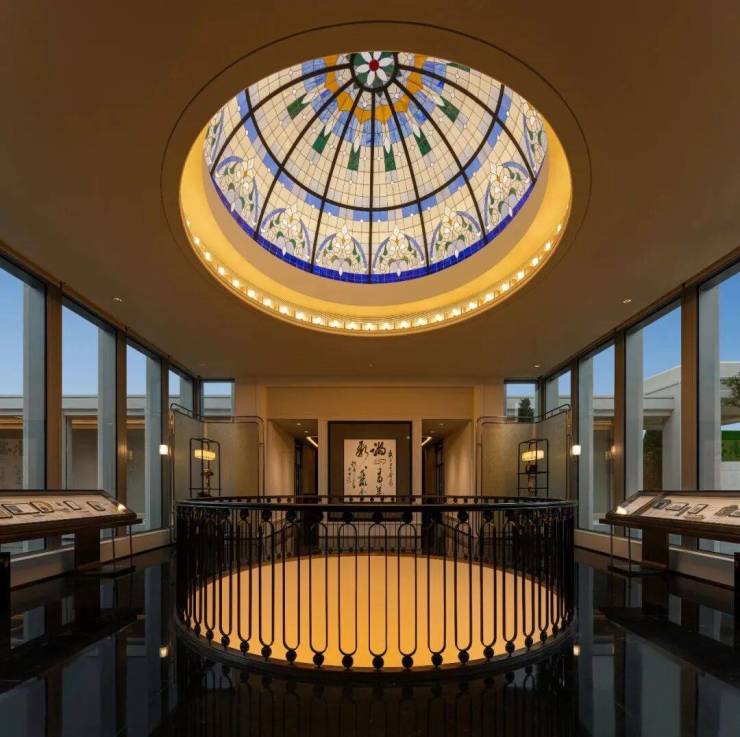 园区里,70年树龄老桩紫薇、桂博园同款椭圆丹桂、水珐景墙旁的乔木红枫,搭配景泰蓝、蓝翡翠等全球进口奢石,把世界珍藏化作私家庭景。大堂室内璀璨的穹顶花窗,是从西湖历史建筑中复刻而来的。
