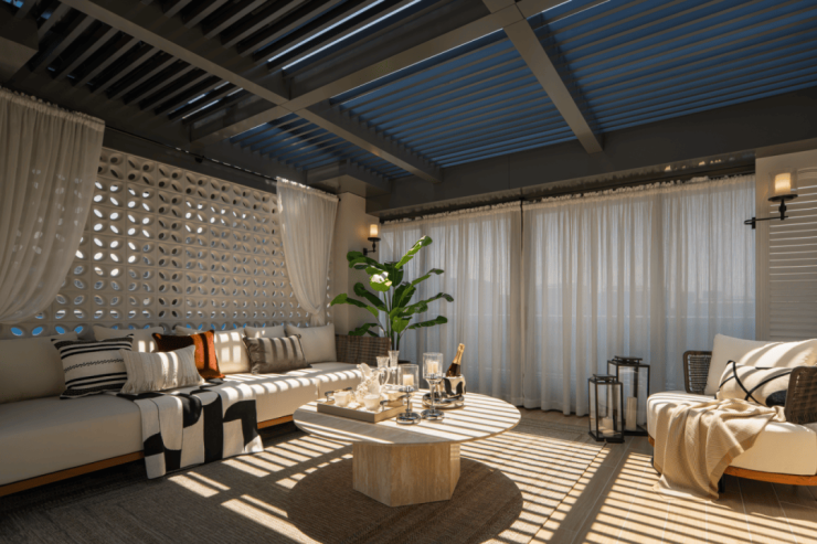 项目创新采用“类孟莎式”屋顶设计-其独特的镂空处理,不仅显著提升了户与户之间的隐私性,更强化了屋顶露台的围合感与私密包裹体验。
