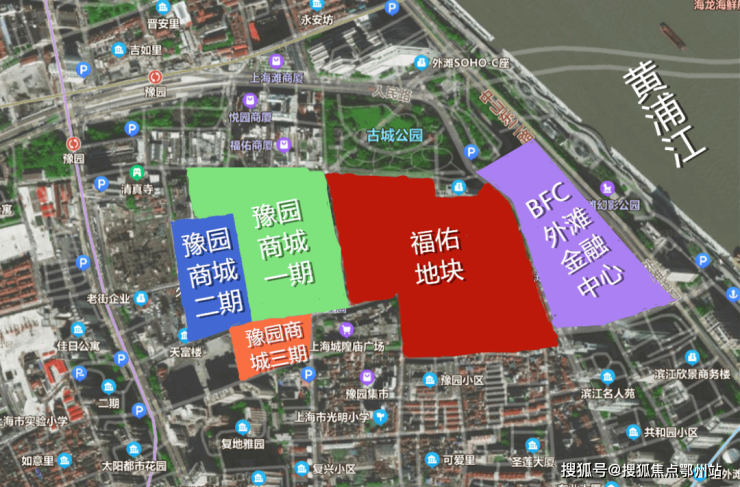 复星是黄浦老城厢片区的深耕者。在福佑地块旁,42万平方米建面的BFC外滩金融中心,以及豫园商城一、二、三期,都是复星的手笔。
