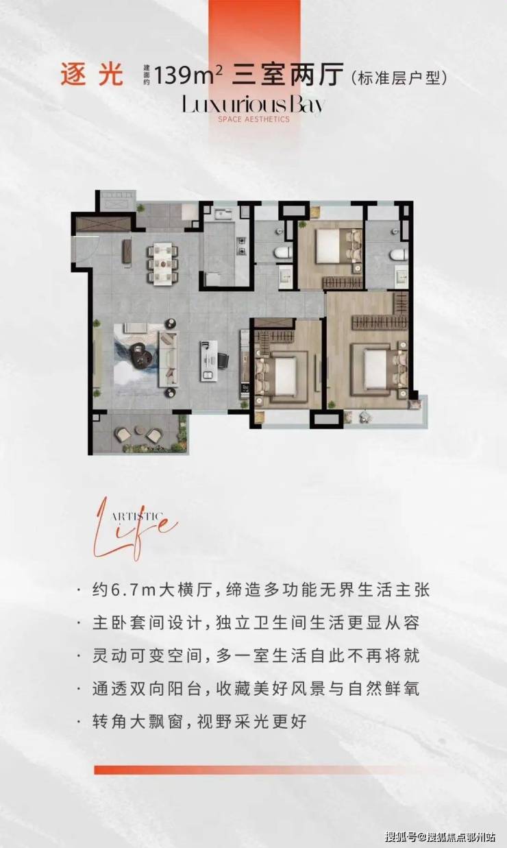 建面约99-139㎡ 精装高层,尽享奢阔面积和超高得房率,匠心研磨动线流畅的厨房、主卧套间、全屋收纳系统等一系列精质细节,主卧套间设计尽显从容优雅, 阔绰尺度灵活空间,满足家庭全周期成长。