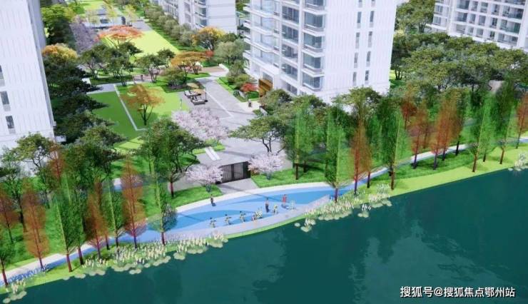 【复地·星愉湾】倚靠旧港河而建,为了能够让更多的业主饱览优美的河景,特别将高层区域沿河而立,以便拥享内外双重景观。