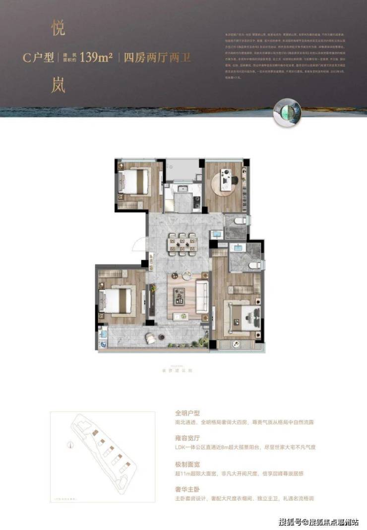 客厅一体化配的4米的飘窗,17米的景观视角真的震撼!而且整个户型还能实现三面自然采光,并且能一览临平山,这样的用心第一眼就打动了我!”