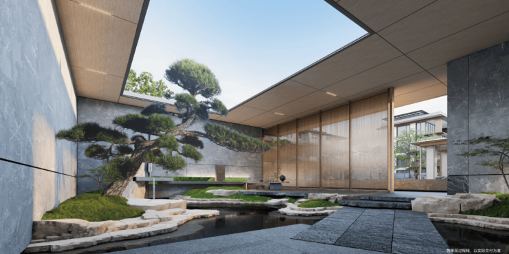 公区的核心亮点,在于精心营造的下沉式琉光水院。