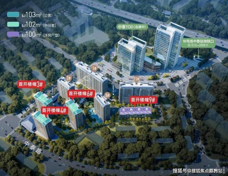 直线距地铁16号线中泰站约200米,门口规划一座体量约10万㎡商场。