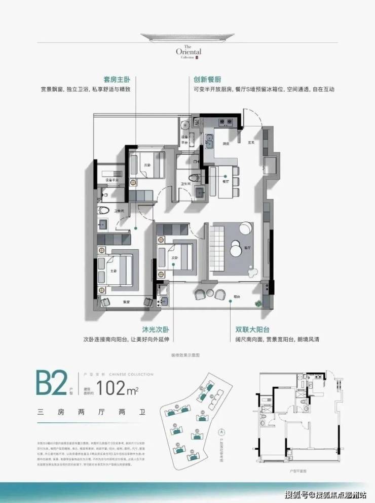 还有 创新S墙设计(非承重墙多出一块“凹陷空间”,安置冰箱),大大节省厨房空间。