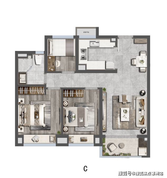 社区方面,项目打造全龄段,全维度活力健康住区,以“两轴一心、一环五区”园林景观规制约7500㎡中央景观,高配约600米环形健身步道。