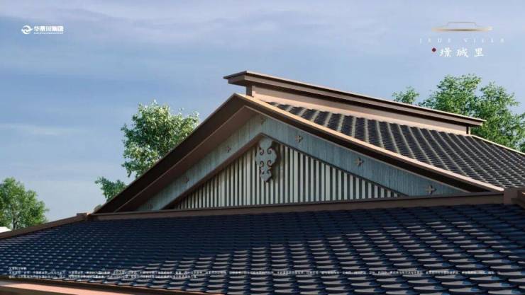 叠墅大悬檐,合院三重飞檐,庄严恢弘,还能提升采光通透性;斗拱,在璟珹里成为灵动精致的艺术符号,提升建筑稳定性;坡屋顶,以极简手法融入院墅,增加房屋的排水、隔热保温,提升居住舒适性。