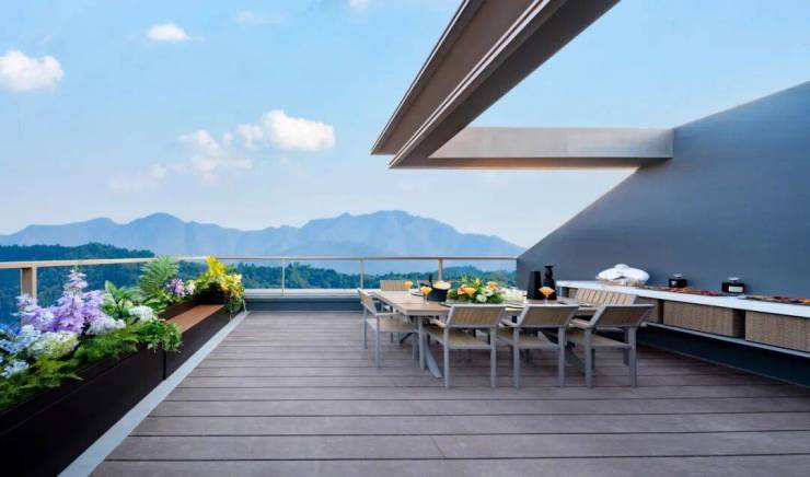 同时,下叠均带约50-60㎡院子,最大的一套更达夸张的210㎡。上叠呢,则可享约80-90㎡露台,满目琉璃山色。其中约238㎡的空中别墅,还开创性地设计为“三层墅”,三代同堂家庭可分层而居。