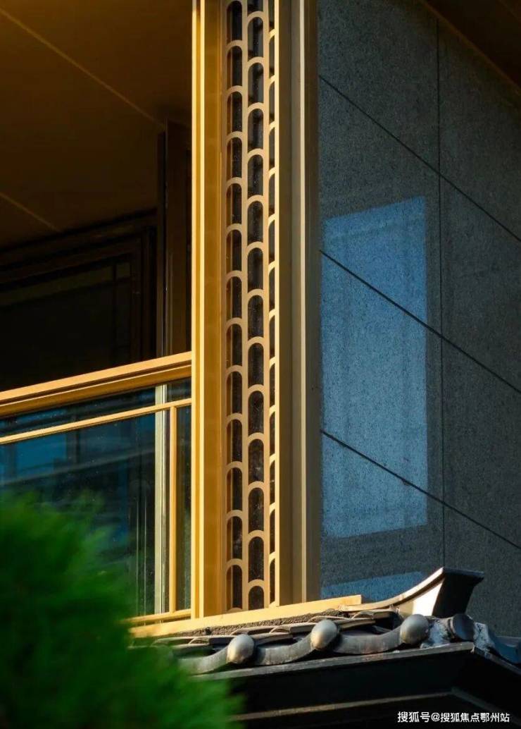 三重屋檐,代表天地人融合的东方宫殿最高等级,上檐、外檐、下檐三重结构,现代立面,以铝板、格栅、石材、瓦墙型材、玻璃等现代型材,彰显传世之宅的独特气度。