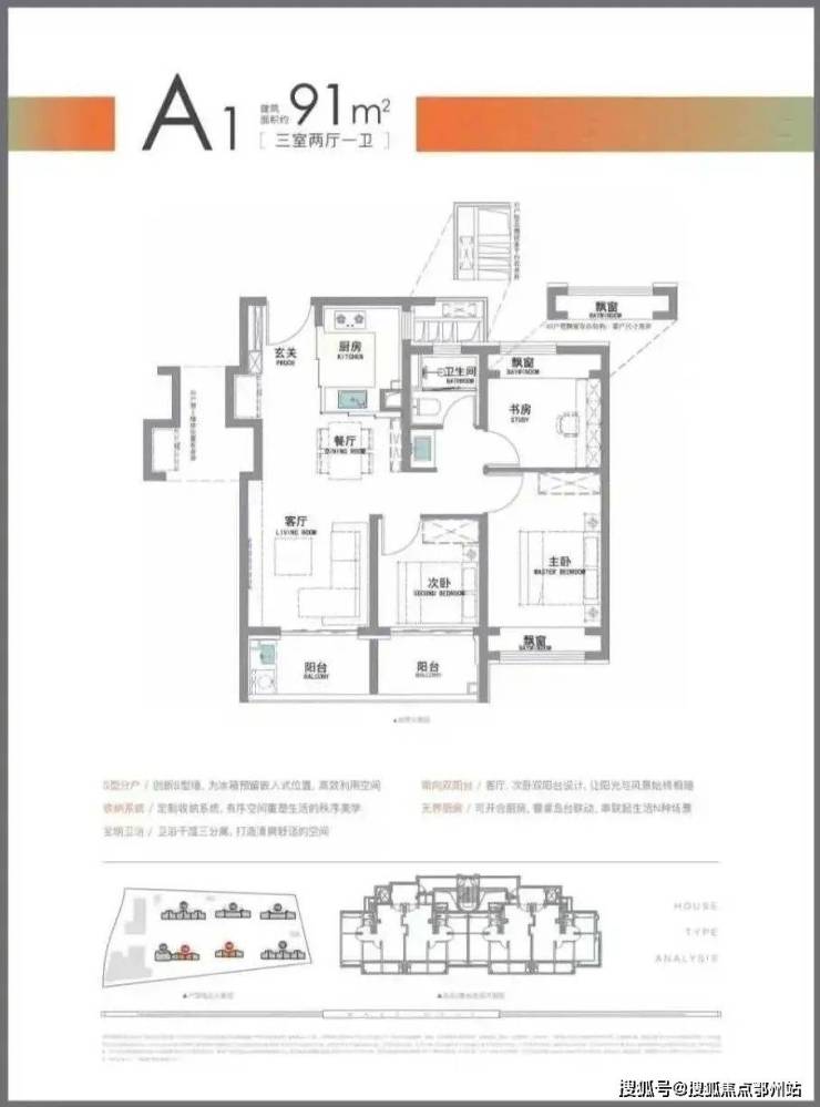 全是9️⃣1️⃣平三房一卫户型