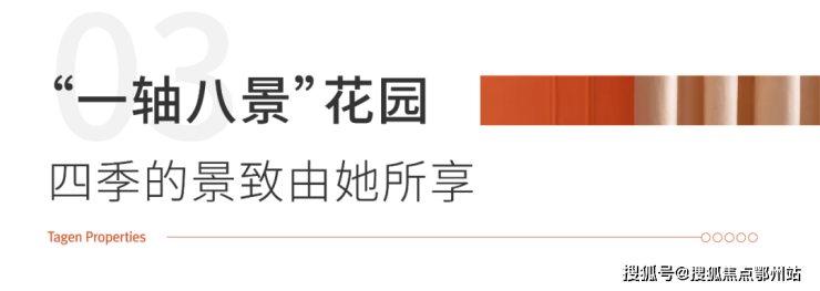 纵观古今,山水园林一直是身份品味与文明蜕变的见证,天健·清枫和苑传承苏州园林的造园意境, 以“一轴八景、多景观组团、邻里生活空间”为主线,打造成收放有致、从闹到静、从静到享的景观模式。 中心大尺度花园总面积达1.2万方,横跨整个小区,配上不同树种的花卉分时绽放,春、夏、秋、冬都将呈现截然不同的美丽景致。
