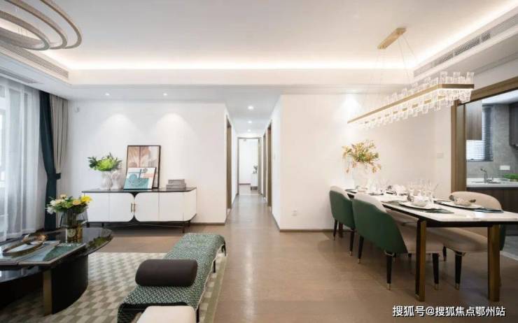 客厅、餐厅、厨房的一体化设计,结合南向景观阳台,使整个功能礼仪区更显空间阔绰。这也让家人聚合、休闲空间一体整合,实现更充裕、更理想的活动空间。