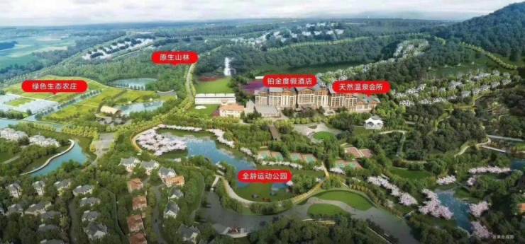 山泉瀑布,7.5万方的温泉度假酒店,4500方的温泉康养会所。
