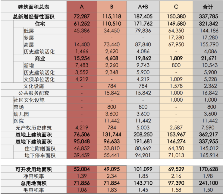 高层:约155790㎡;多层:约17280㎡;低层(别墅)约144186㎡;历史建筑:约4068㎡。