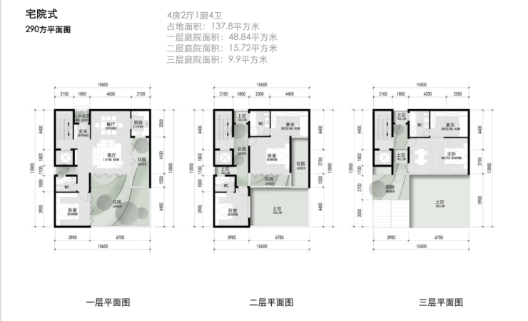 建面约290-360㎡宅院式合院;