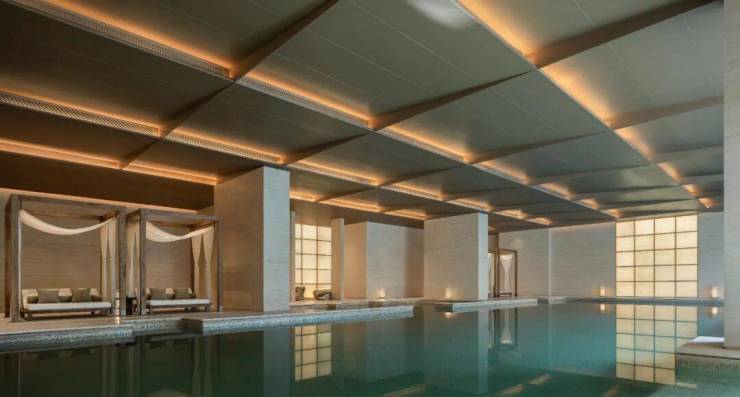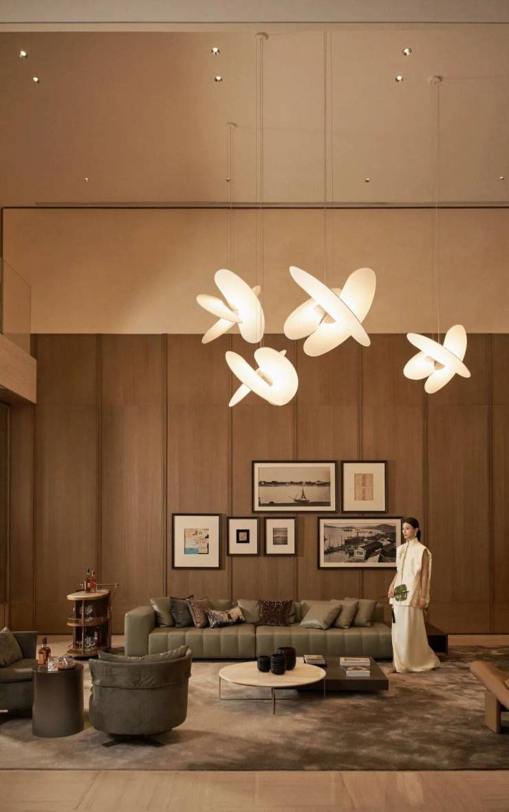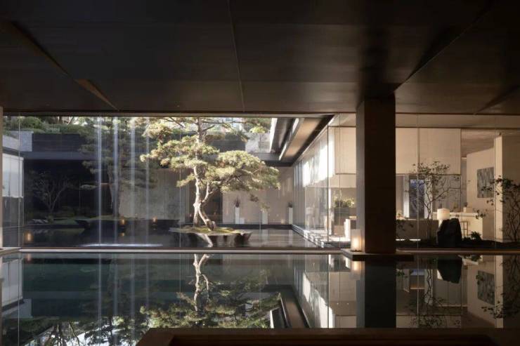 归心会所:约1200m²的下沉式会所,自然放松,身心滋养,全落地玻璃围合的艺术感大堂,光影共济的木纱过厅,水景交融的天光会客厅,展陈艺术的艺术廊厅以及宁波首个东方疗愈泳池,五大会所空间,高定宁波家族奢享