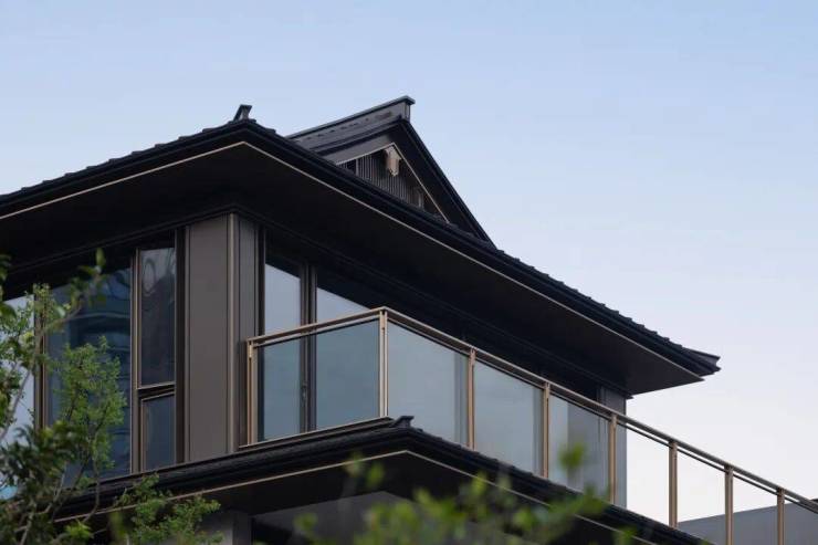 大窗墙比全幕墙系统设计、以石材/铝板代替传统木材涂料,保留宋式建筑的纤巧淡雅神韵美感,打造一处家族传承的时代藏品