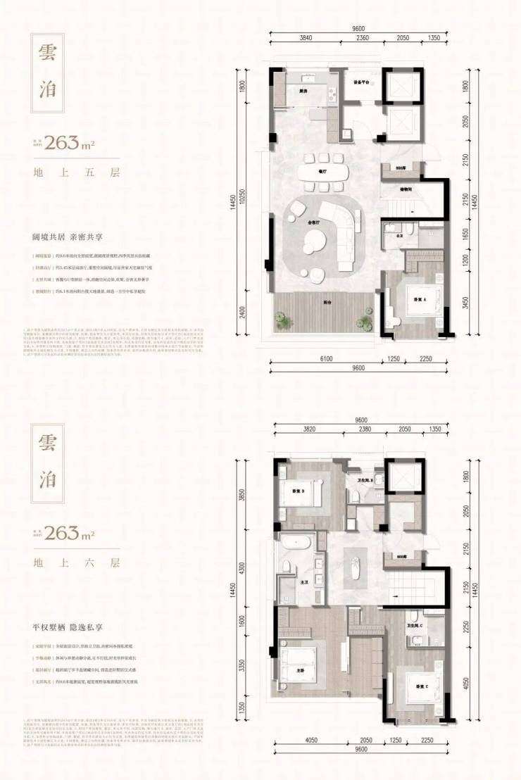 ◎引领市场的奢阔层高:从生活居住动线出发,从社交到休憩细致考量,将空间让渡社交空间,联排合院客厅层高约3.8m,叠拼客厅层高至高约3.55m,给予居住自在体会