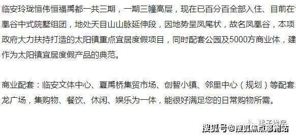 临安玲珑恒伟恒福禹都一共三期,一期三幢高层,现在已百分百全部入住。目前在售二期凤凰谷中式院墅组团,地处天目山山脉延伸段,