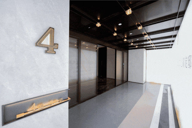 在门头及入户大堂的用材上: 单元门头整体和小区入口大堂呼应,两侧采 用大象灰石材哑光面和拉槽面 ,搭配定制龙鳞纹金属网,带给业主的出入间的仕第门庭礼序,呈现了现代东方的城市风骨,尊贵感油然而生。