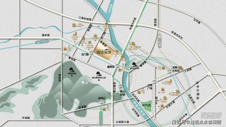 诗语溪境坐落于惠山与京杭大运河的中心, 直面惠山森林生态公园,步行约600米即可到达大运河畔,尽享“倚山傍水”的绝美风光,是众多无锡人的“梦中情房”。