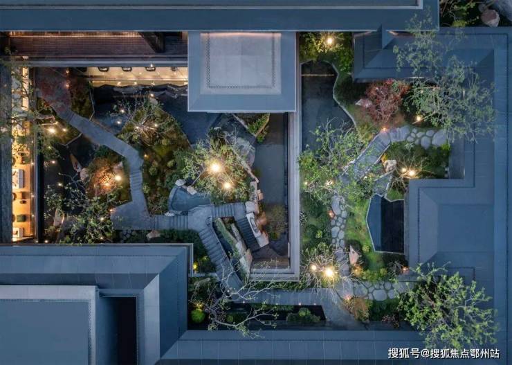 通过下沉会所庭院,将传统平面绿化转化为垂直的多层次园林空间,打造出了当代立体山体水景观,身处其中在步履起承转合间,串联起一幕幕诗画风景。