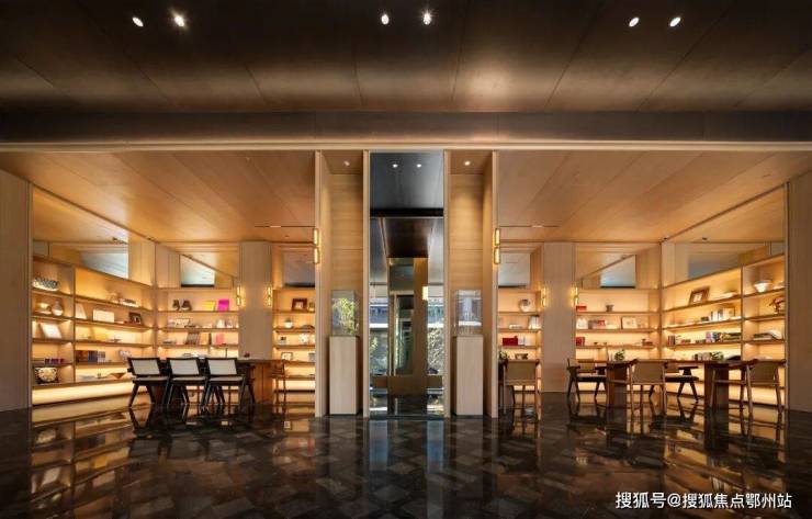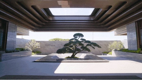 公区方面,西入口正对一棵挺拔的泰山油松、灵动的水景、与艺术感的屋檐共同构成一座现代语境下的“玲珑宝盒”,营造出从喧闹到宁静的情绪转换。